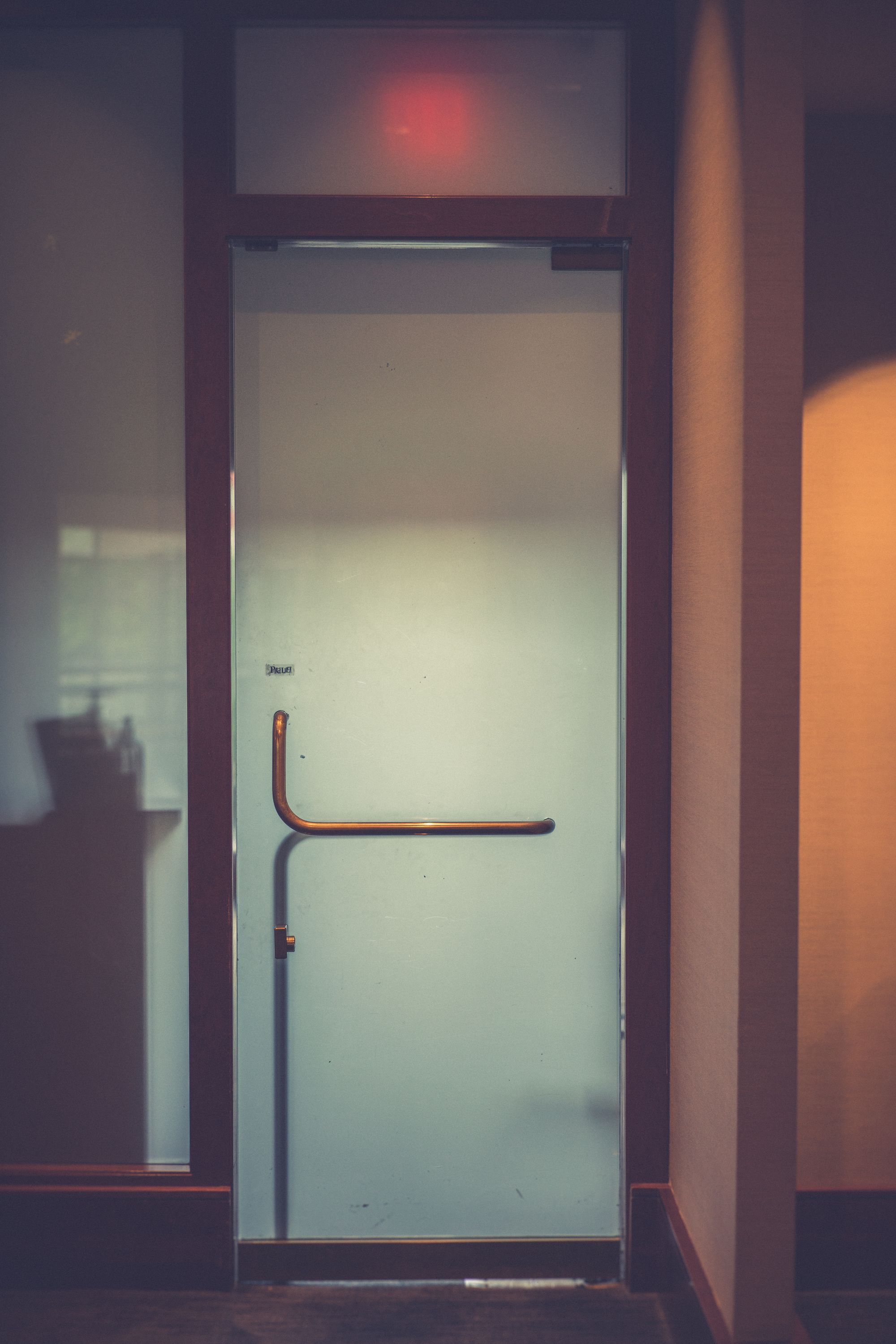 Half way down the hall was an office. The smoked glass revealed shadows from inside. A desk, perhaps. The red glow of an exit sign.