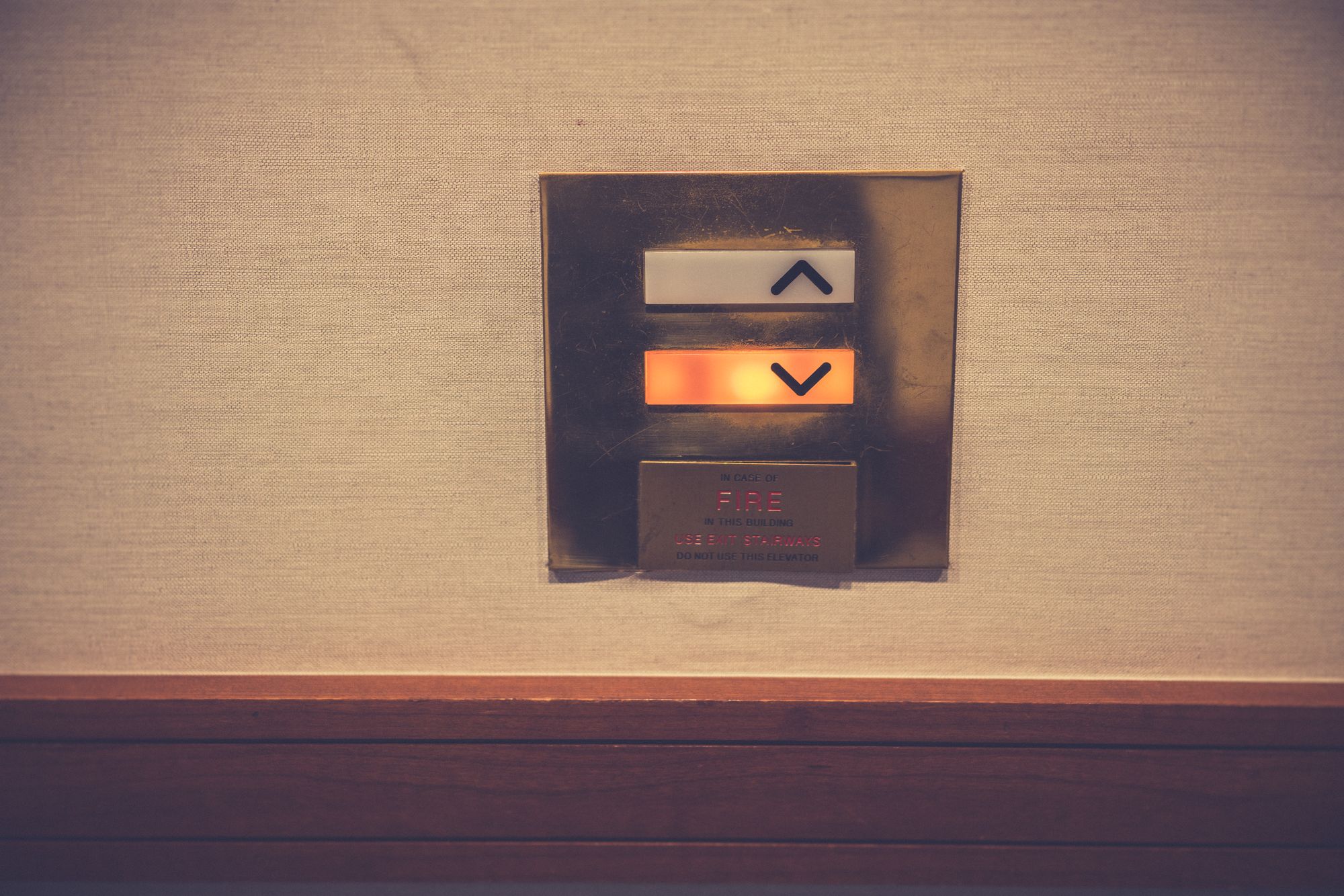Nearing the elevator, I noticed a house phone on the wall. I continued walking, and pressed the down arrow. As the elevator car stopped on my floor, a bell dinged and the doors slid open. Pausing for a moment, I looked inside, then took three steps before turning around and pressing “L” for the lobby. Out of habit, I then hit the button twice to close the doors, and they slid shut.